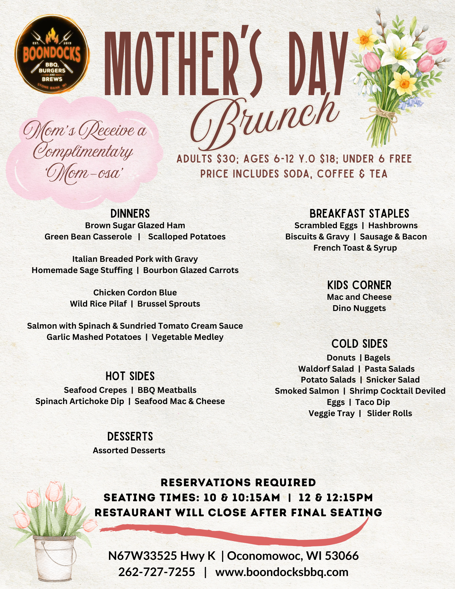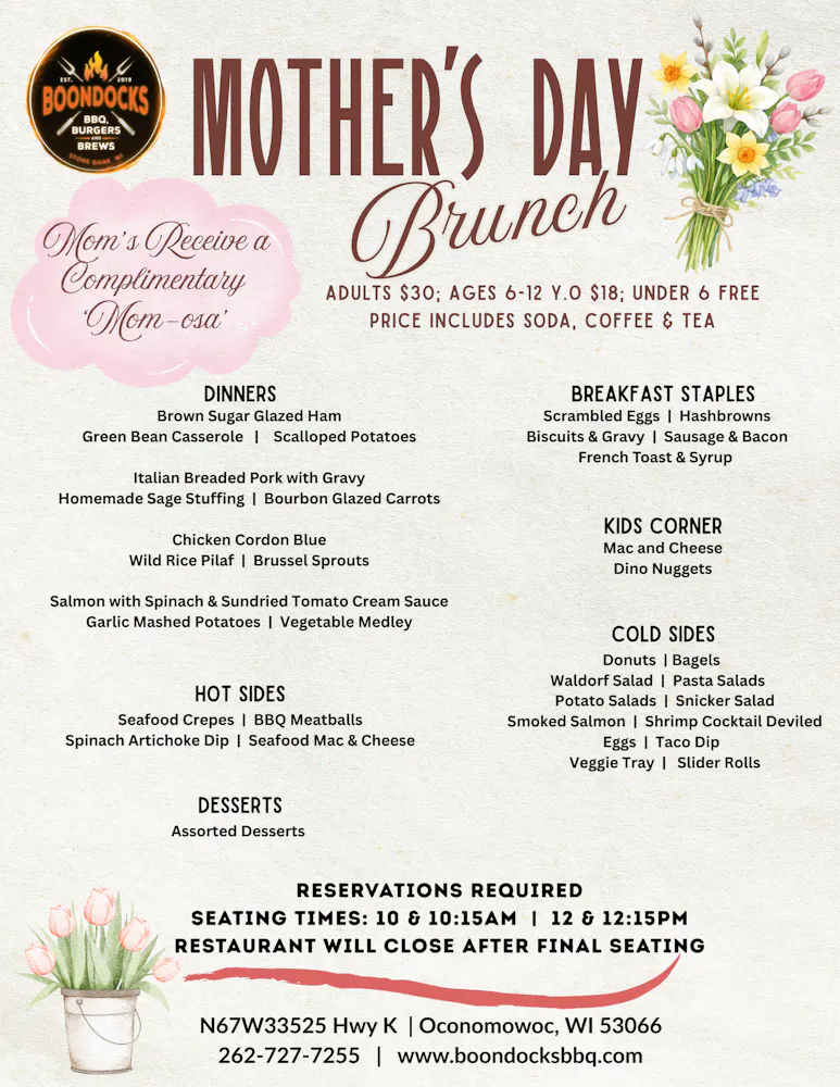 From our spacious backroom, available for reservations, to our on-site and off-site catering, Boondocks can make your special event one for the memory books!